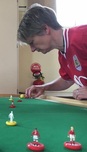 My first game of Subbuteo would have been on my bedroom floor in 1975! I was living in Bristol and supported Bristol City FC. I think I was imagining myself at Ashton Gate…I played with a few friends, before TV’s Match of the Day on Saturdays and before the Big Match on Sundays! I was 11 ?