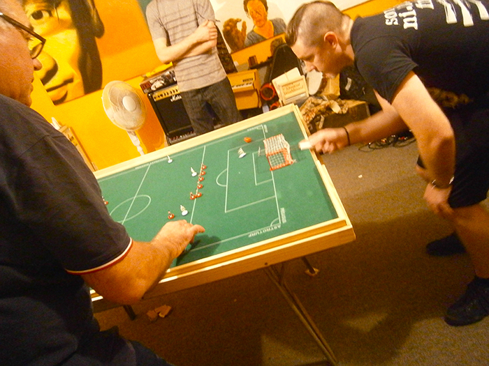 Adrian entered the game trying out some new polish, while Steve had found his form and began with confidence. However, after attacking for the opening few minutes, he found himself a goal behind following Adrian’s first foray forward. Against the run of play, yes, but true to the nature of the Wanderers figures Adrian was playing with. Steve doubled the pressure in response and forced a few fine saves however, things were not going all his way and he needed some strong goalkeeping of his own. He finally found the equaliser after Adrian missed an opening at one end, the ball ending in the back of his own net a few swift flicks later. So the scores were locked going into the break. The second half continued much as the first, with lots of midfield action and Steve edging possession and drawing more saves. However, the game remained well in the balance. Steve then pulled out one of the goals of the competition – having millimetres to work in, he sent the only figure with a sight of the ball from deep in his own territory to chip the ball delicately over Adrian’s ‘keeper for a match winning goal that was worthy of the title. Adrian had a couple of chances as he pressed in the closing stages but couldn’t find the goal, Steve coming out victorious in one of the season’s most tense games.