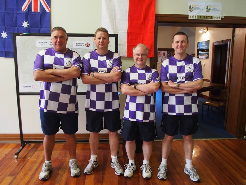 Under the captaincy of Peter Thomas, Melbourne Table Football Club A powered through Group A taking maximum points from their two group games. The team comprising of Thomas, Radziminski and Simpson might have been without star player Carl Young but there was no stopping them as they defeated Northern Falcons Table Football Club B.