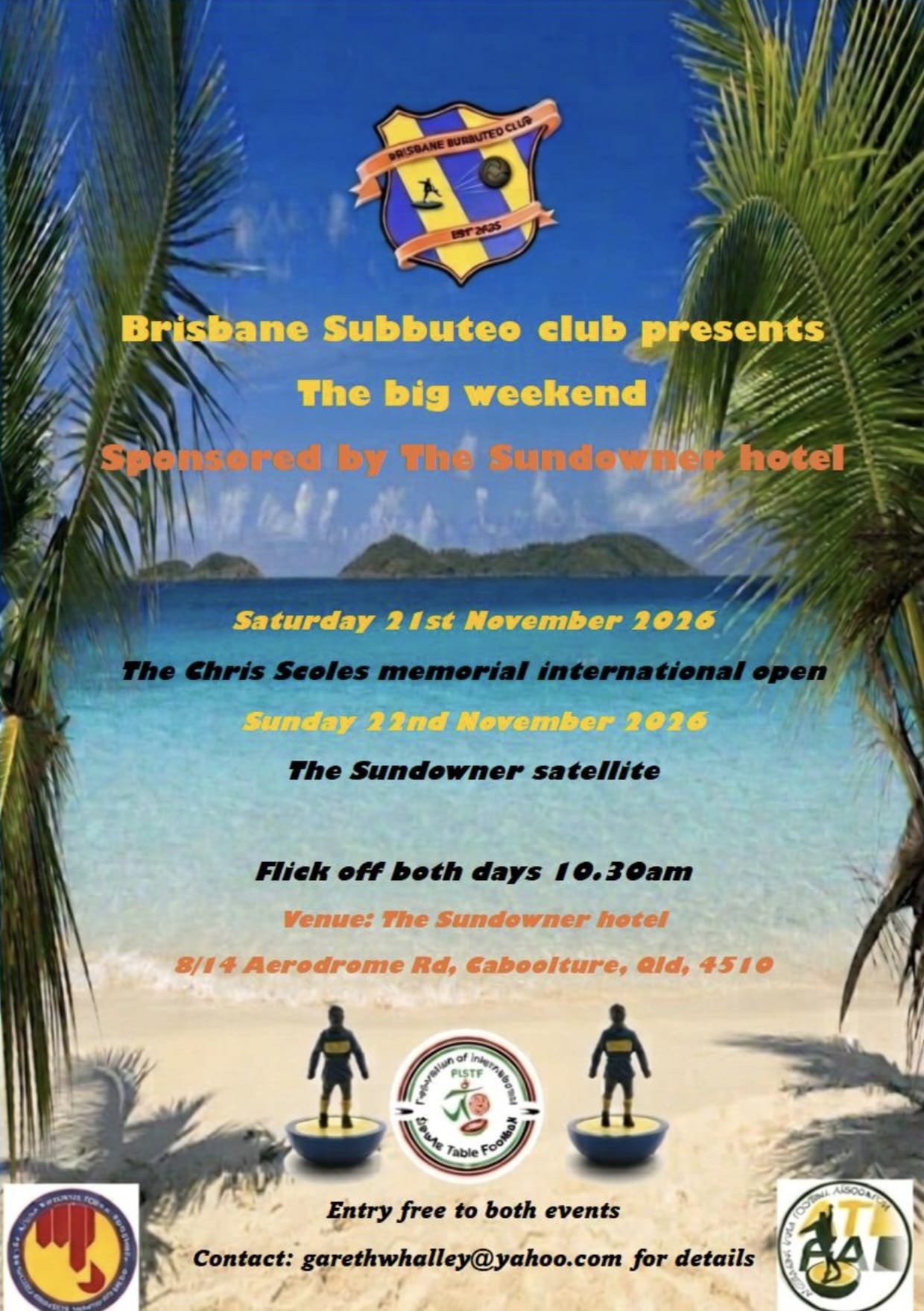 Federation of International Sports Table Football associations tournaments are the highest level of tournaments held and overseen by the world governing body . As a member nation, Australia is allowed 8 tournaments per year, ranging from a Grand Prix, to International Opens and Satellite tournaments. The boxes below contain details for upcoming FISTF tournaments.